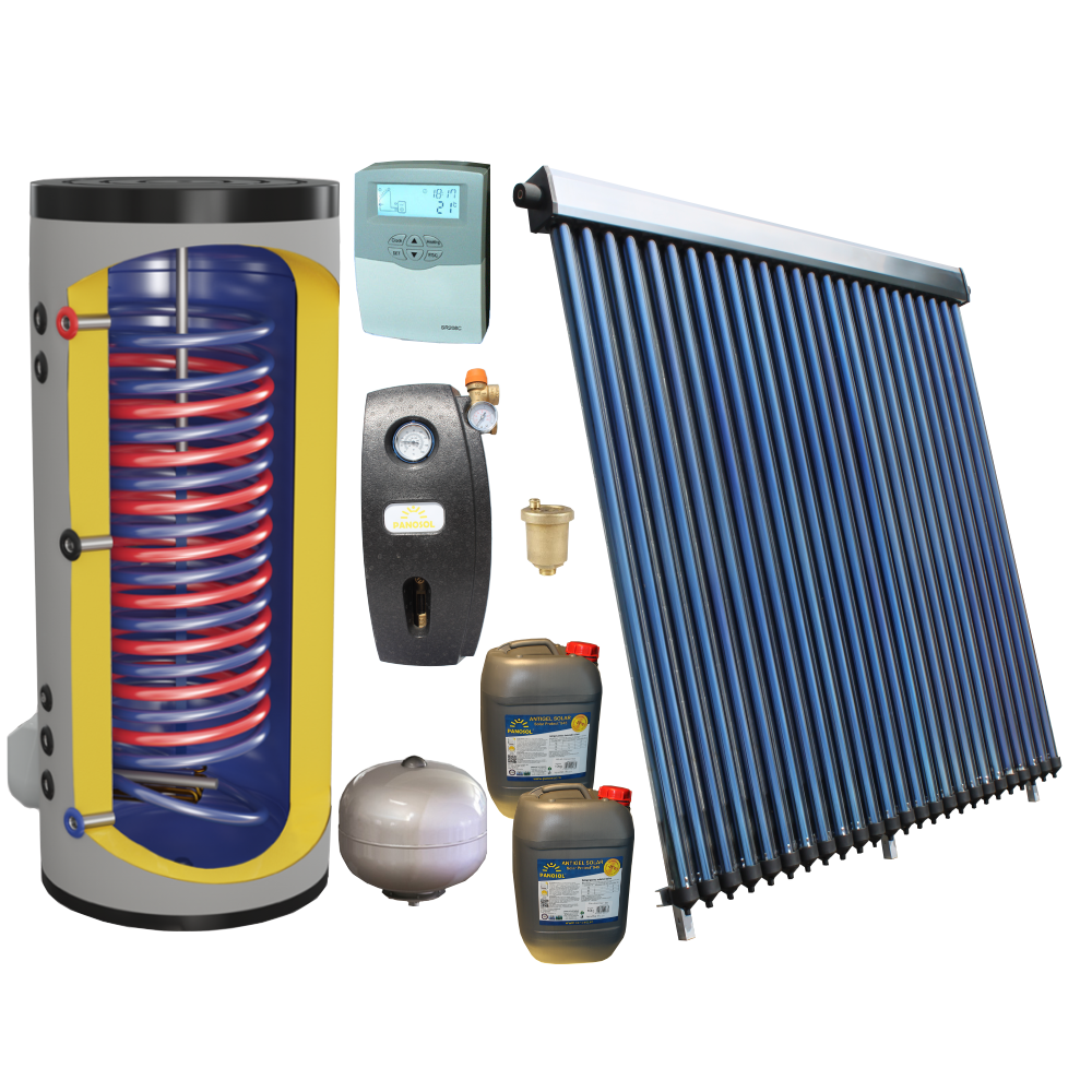 Sistem solar pentru prepararea apei calde menajere pe tot parcursul anului. Sistemul este proiectat pentru a asigura necesarul de apă caldă menajeră în gospodării cu până la 6 utilizatori.